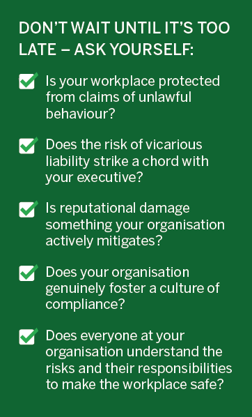 - Guard against the impact of poor workplace behaviour and mitigate financial, legal and reputational risk.
