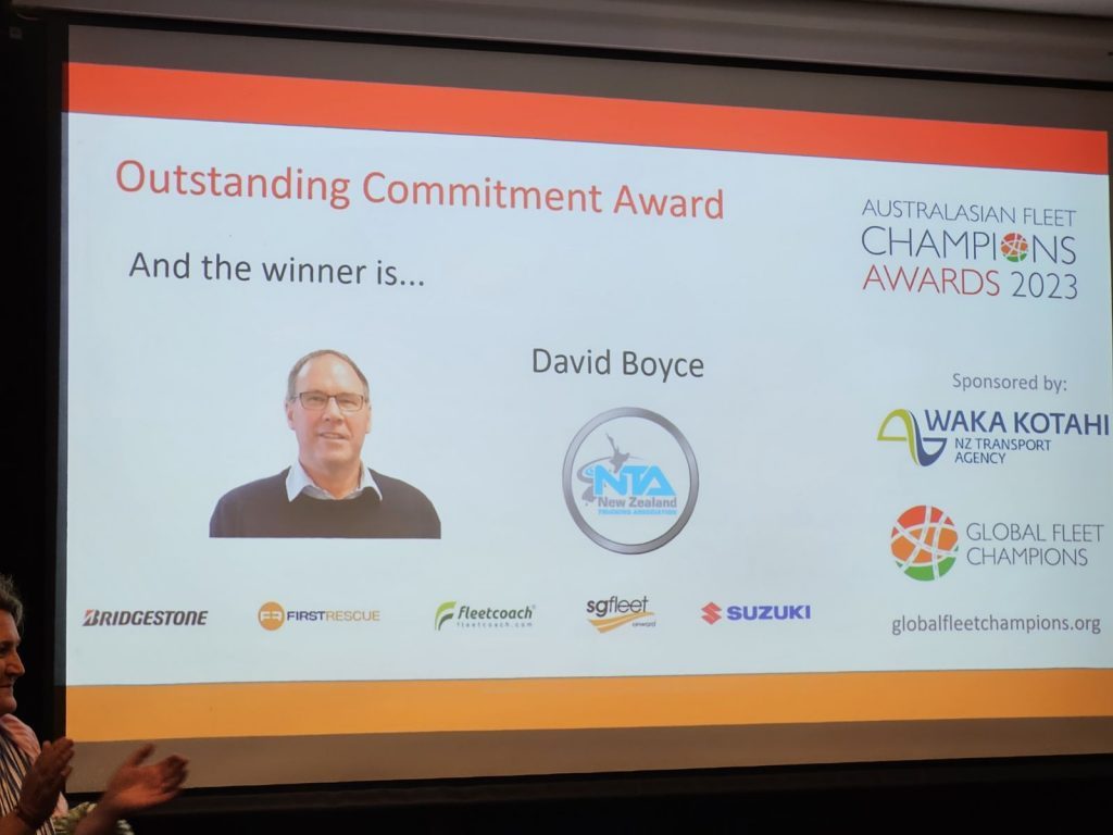 As well as categories for organisations, two individual awards were presented to fleet professionals including the prestigious Outstanding Commitment to Road Safety Award, which was awarded to David Boyce, NZ Trucking Association.
